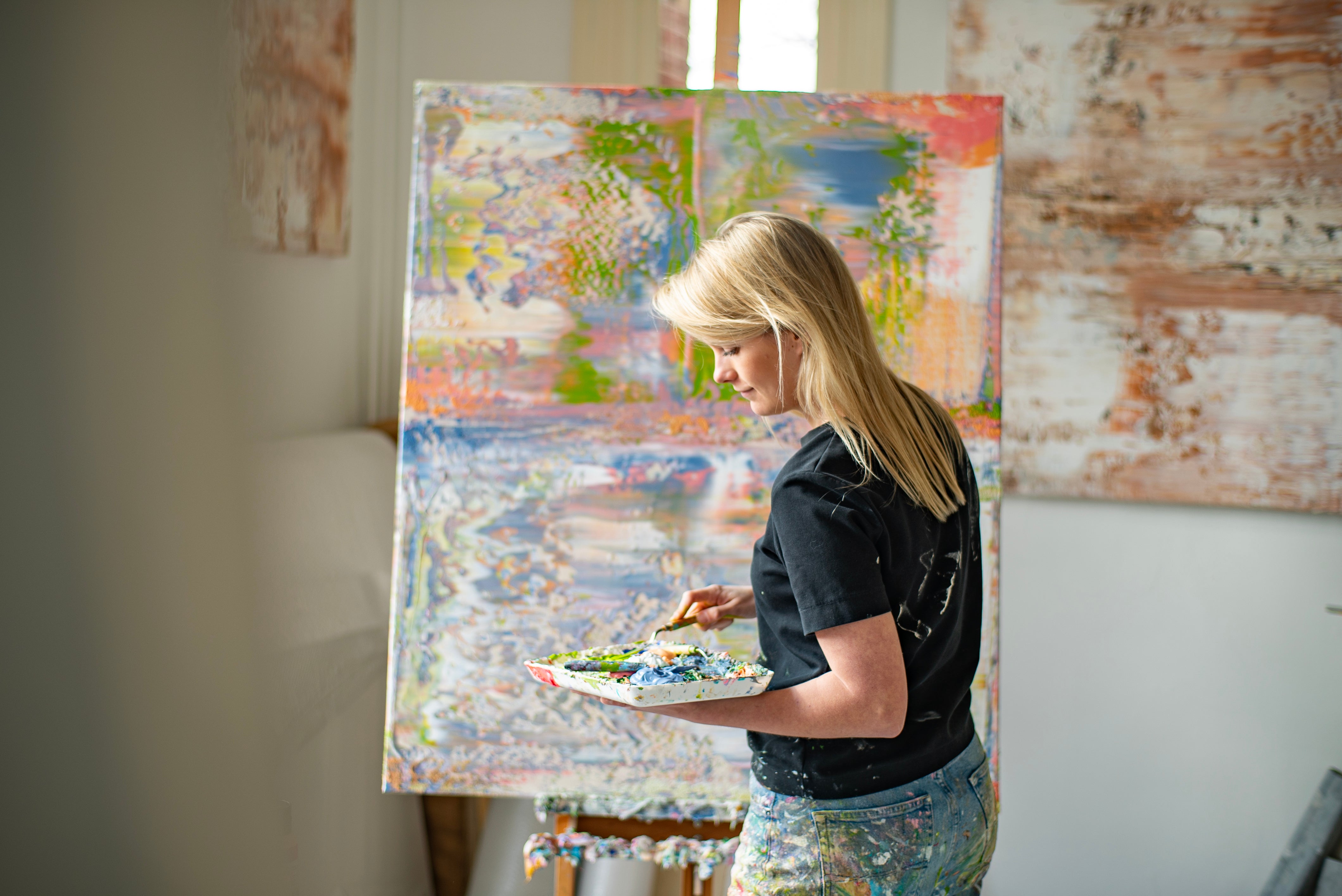 For Dutch contemporary artist Lynn Spoor, strength in art doesn’t come from pushing harder. It comes from letting softness in: space, stillness, the freedom to play. She paints on location and often mixes in what’s around her: sand, marble dust, dried flowers. Each canvas carries the trace of a place where creativity was allowed to breathe.