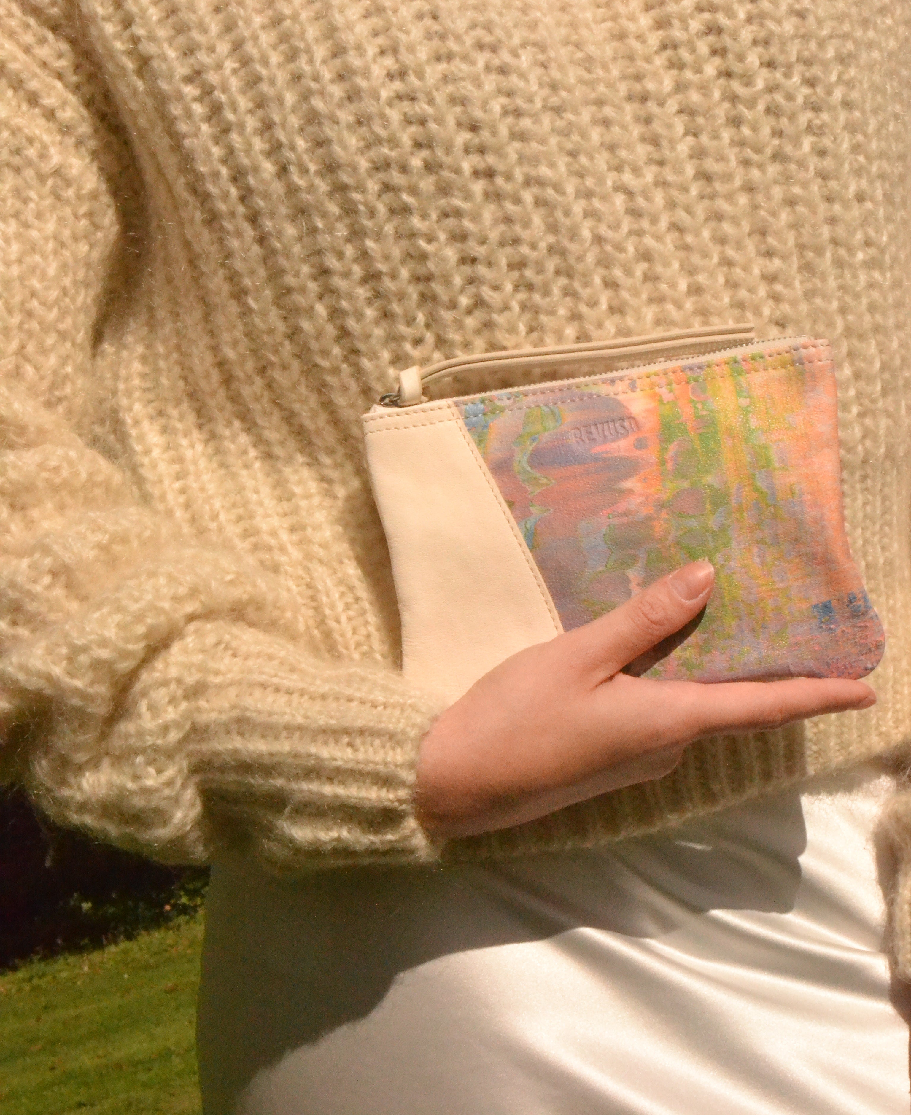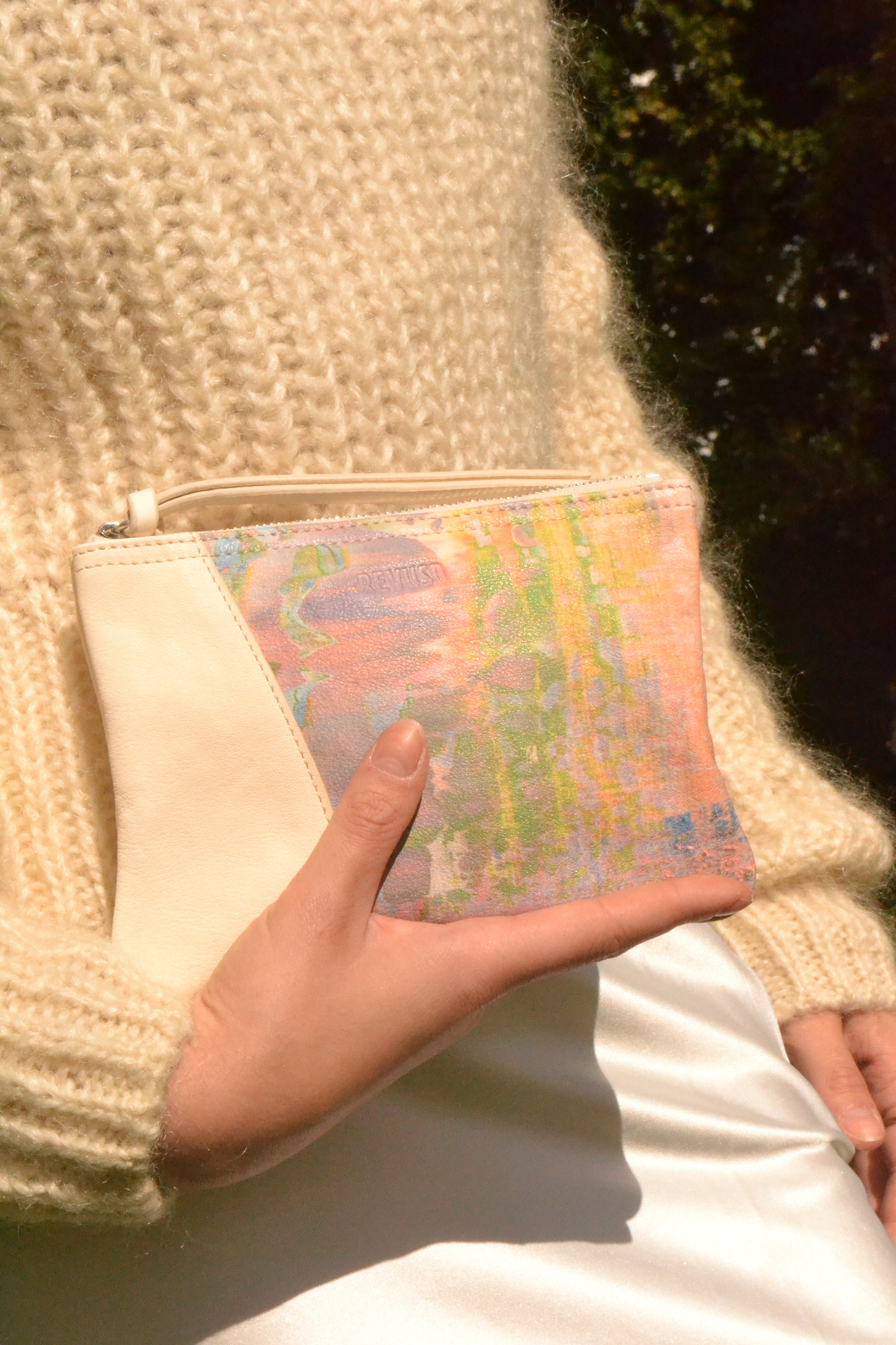 From this painting, a single composition was chosen. Transferred directly onto full grain wet white leather, the artwork becomes part of the material - not placed on top, but embedded within. The result is more than a printed bag. It’s a piece of Lynn’s world, in motion. Carried close.