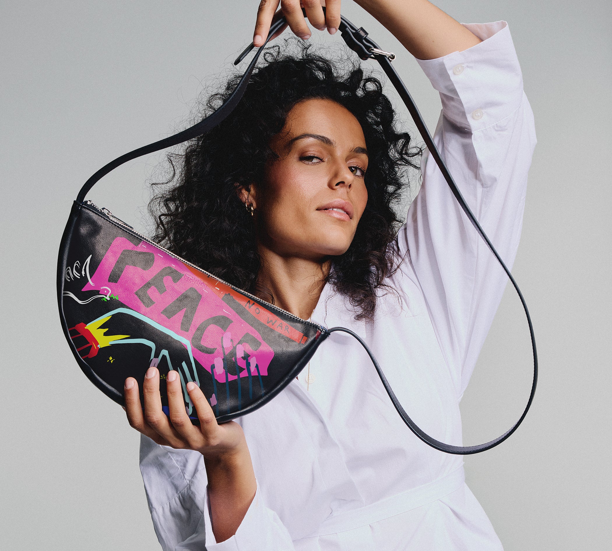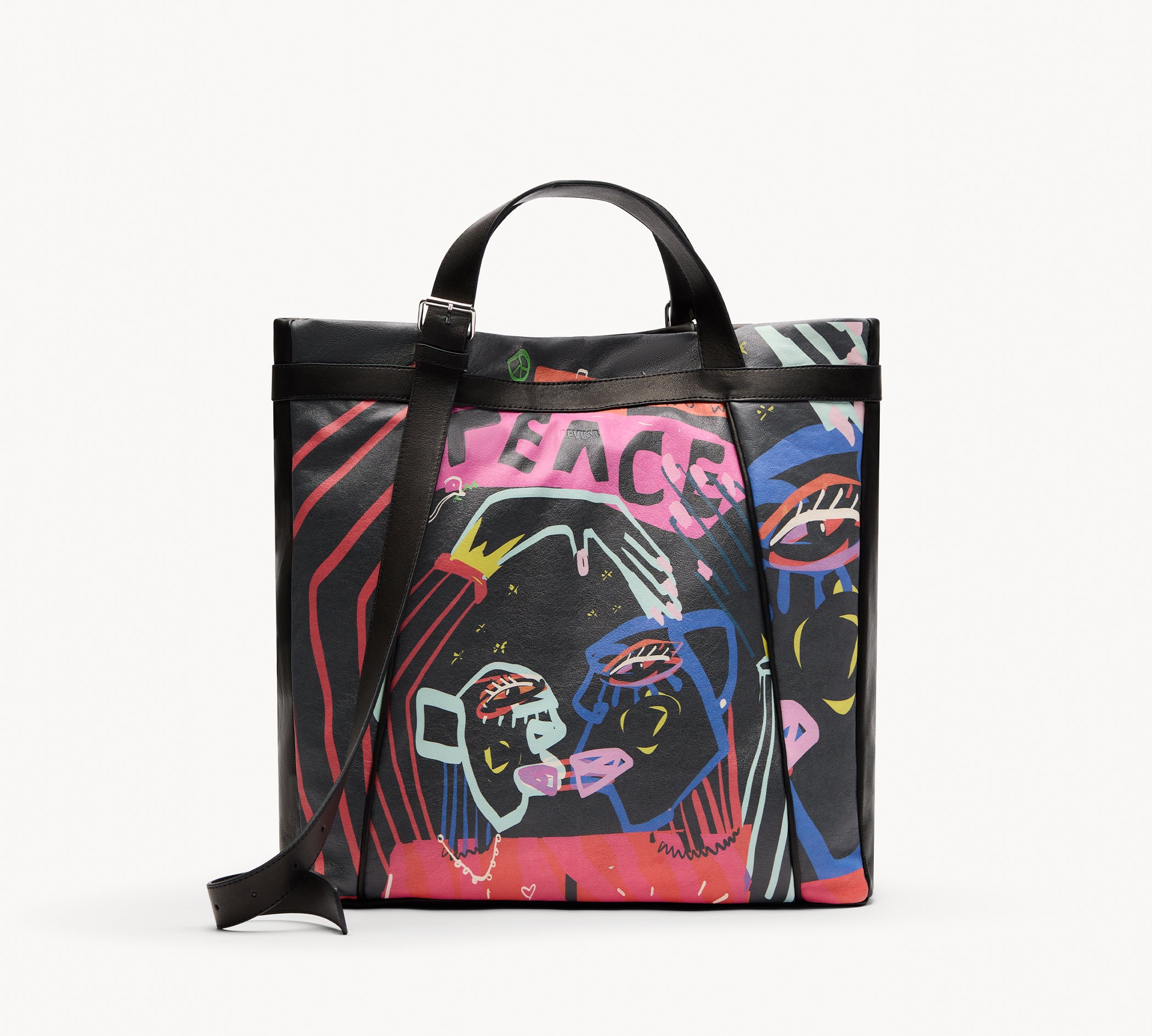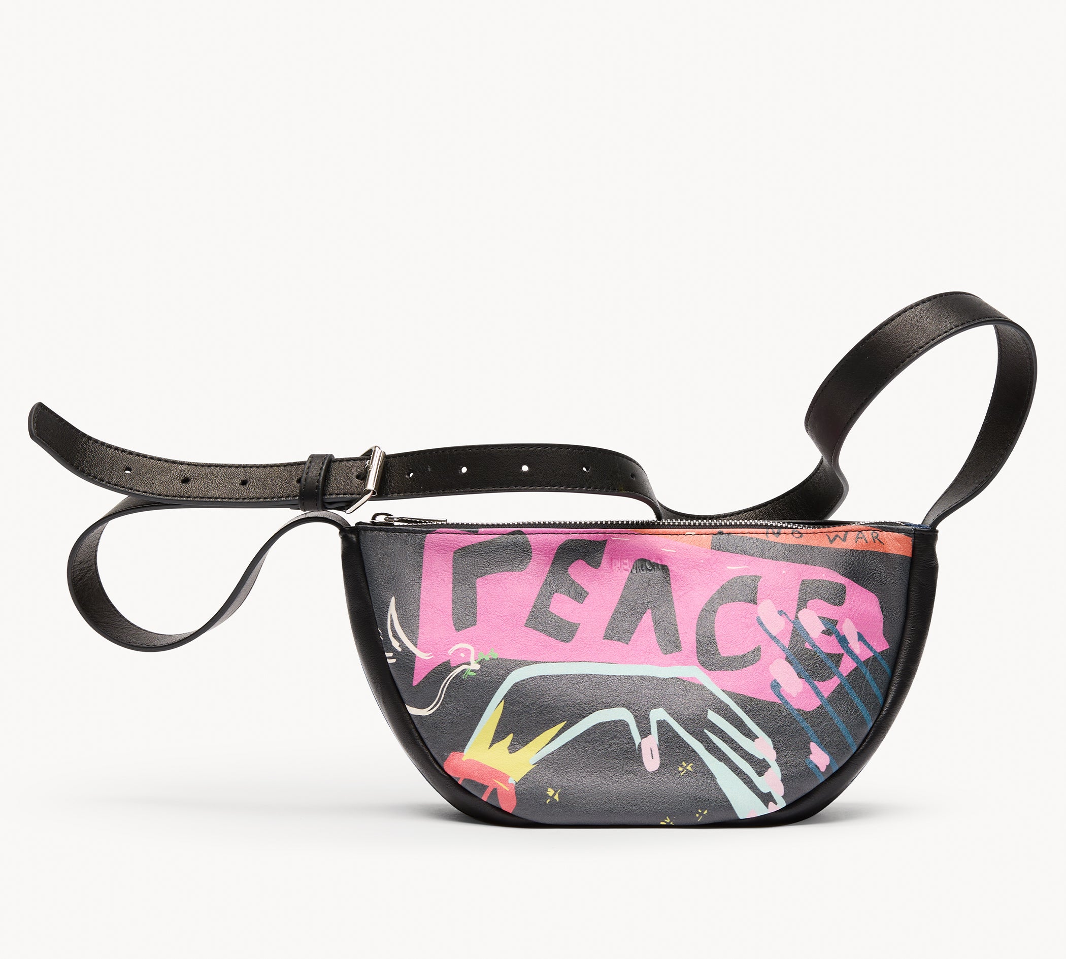 Through advanced embedding techniques, a fragment of this painted plea is carried onto the leather. Preserving its emotion, energy, and intent. A sculptural object of hope, to carry into the world.